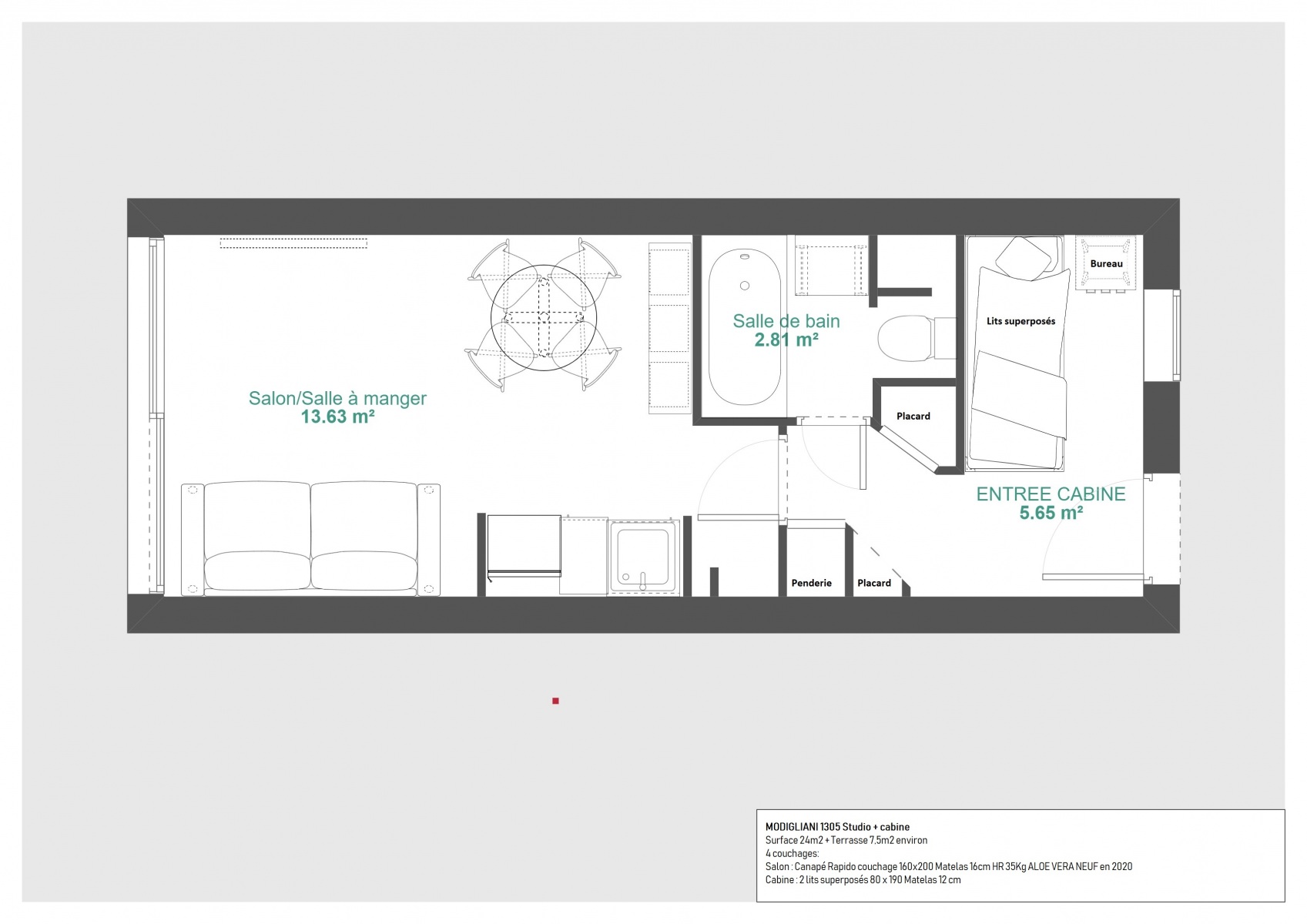 STUDIO + Cabine pour 4 personnes (2 adultes + 2 enfants) maximum